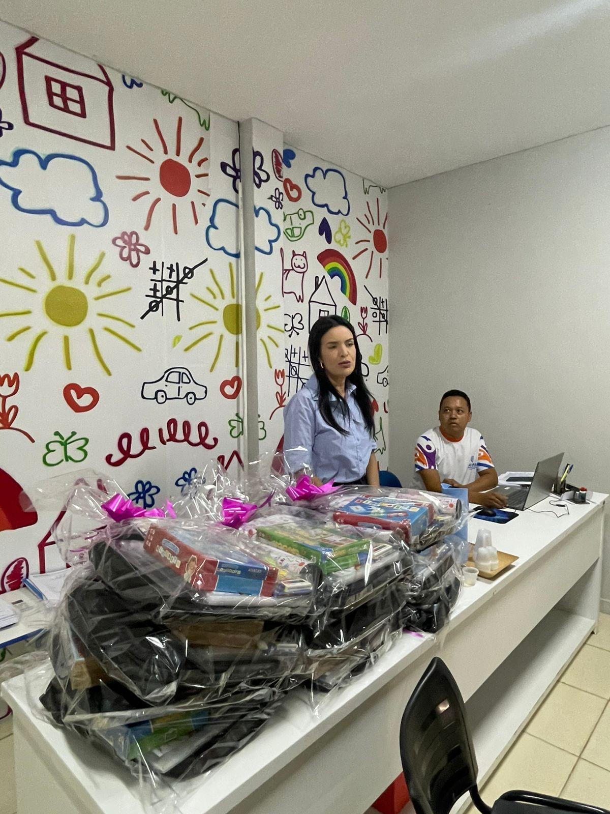Os kits de trabalho são compostos por itens que auxiliam no desempenho das atividades diárias dos profissionais. “É uma grande satisfação a gente estar recebendo esse kit maravilhoso, que ajuda no nosso trabalho, no nosso dia a dia, para ajudar as crianças no desenvolvimento das atividades lúdicas e didáticas”, comenta Yasmin, visitadora do Programa Criança Feliz.